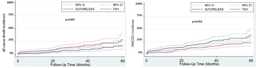 Limitaciones del trabajo: No es un estudio randomizado. El grupo TAVI incluye un porcentaje alto de prótesis puestas por vía transapical, lo que puede empeorar sus resultados. EL grupo sutureless también es heterogéneo en las vías de abordaje.