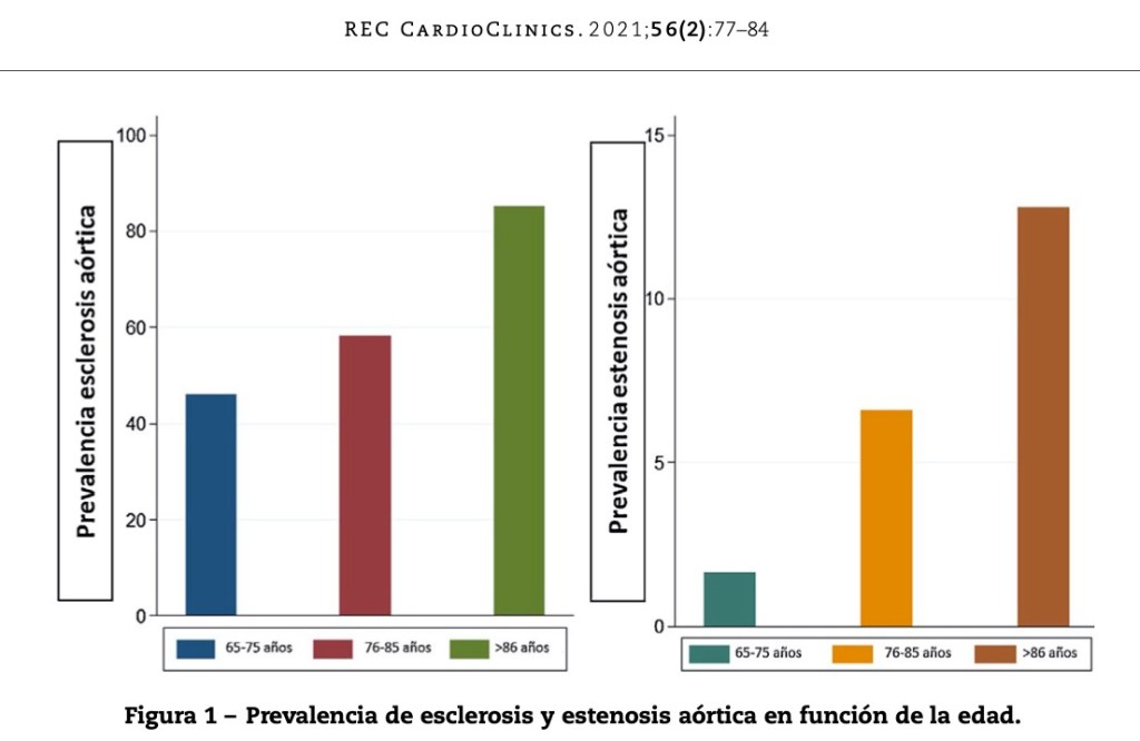 En el estudio participaron un total de 522 personas con una edad media de 78,7 años (61% de mujeres). La «esclerosis aórtica» (paso previo a la EA) se detectó en el 53,4% de los sujetos, apareciendo en el 85,1% de los mayores de 85 años. Un 4,2% de la población analizada presentó algún grado de EA: leve (1,9%), moderada (1,9%) y grave (0,4%). La prevalencia de EA guardó también una clara relación con la edad, ya que en los mayores de 85 años fue del 12,8%. La etiología de la EA fue en todos los casos degenerativa-calcificada.