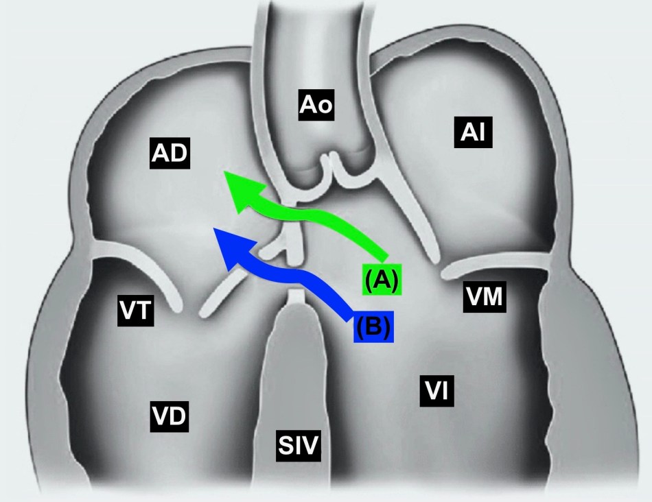 El defecto septal tipo Gerbode es una comunicación entre la aurícula derecha y el ventrículo izquierdo muy infrecuente. Fue descrito por primera vez en 1838 por Thurman J, pero no recibió su nombre hasta 1957, año en el que Gerbode et al. publicaron la primera serie de 5 casos reparados quirúrgicamente. Generalmente es de origen congénito y más raramente adquirido, el cual puede ser secundario a cirugía de reemplazo valvular aórtico o mitral (51%), endocarditis (37%), traumatismo torácico cerrado (9%) o infarto agudo de miocardio (3%). Anatómica y funcionalmente, el Gerbode se puede clasificar en directo o supravalvular (A en la figura) y en indirecto o infravalvular (B en la figura).