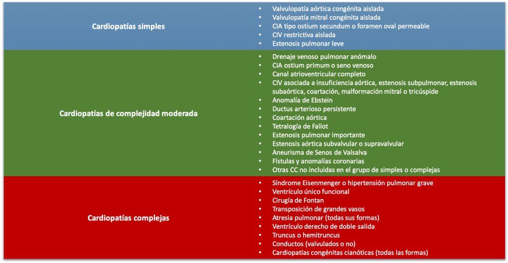 Las cardiopatías congénitas del adulto se pueden clasificar en función de su complejidad: