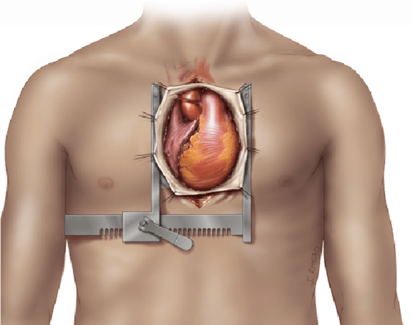 Castedo E, Montero CG, et al. Thoracic wall reconstruction after minimally invasive coronary artery bypass grafting. Ann Thorac Surg 1997; 64 (6): 1877-1878.